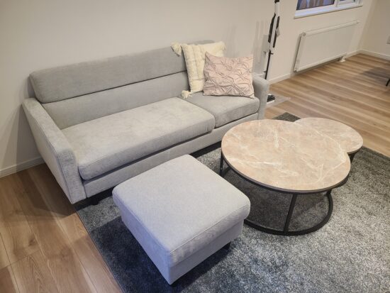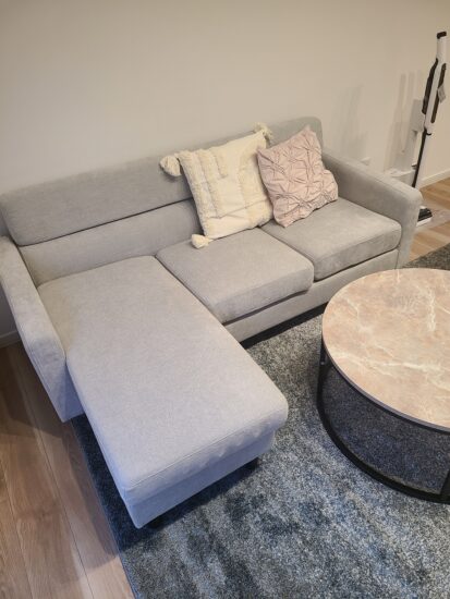 こちらのソファーは、L字型と独立スツール型、お好きな形に変えて
