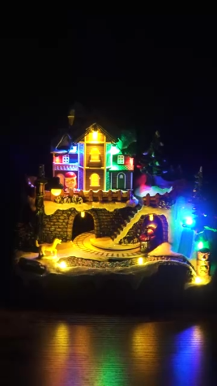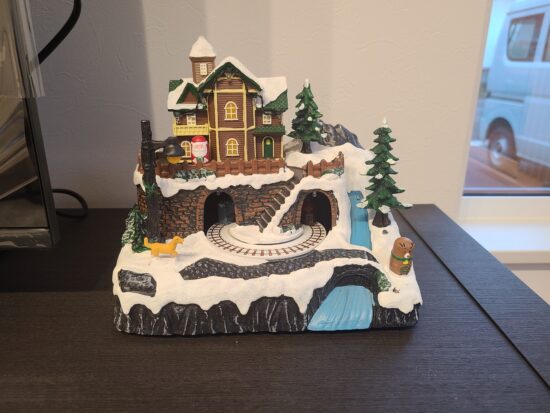 すぐ売り切れちゃうんですって。プレゼントを運ぶジオラマの列車と