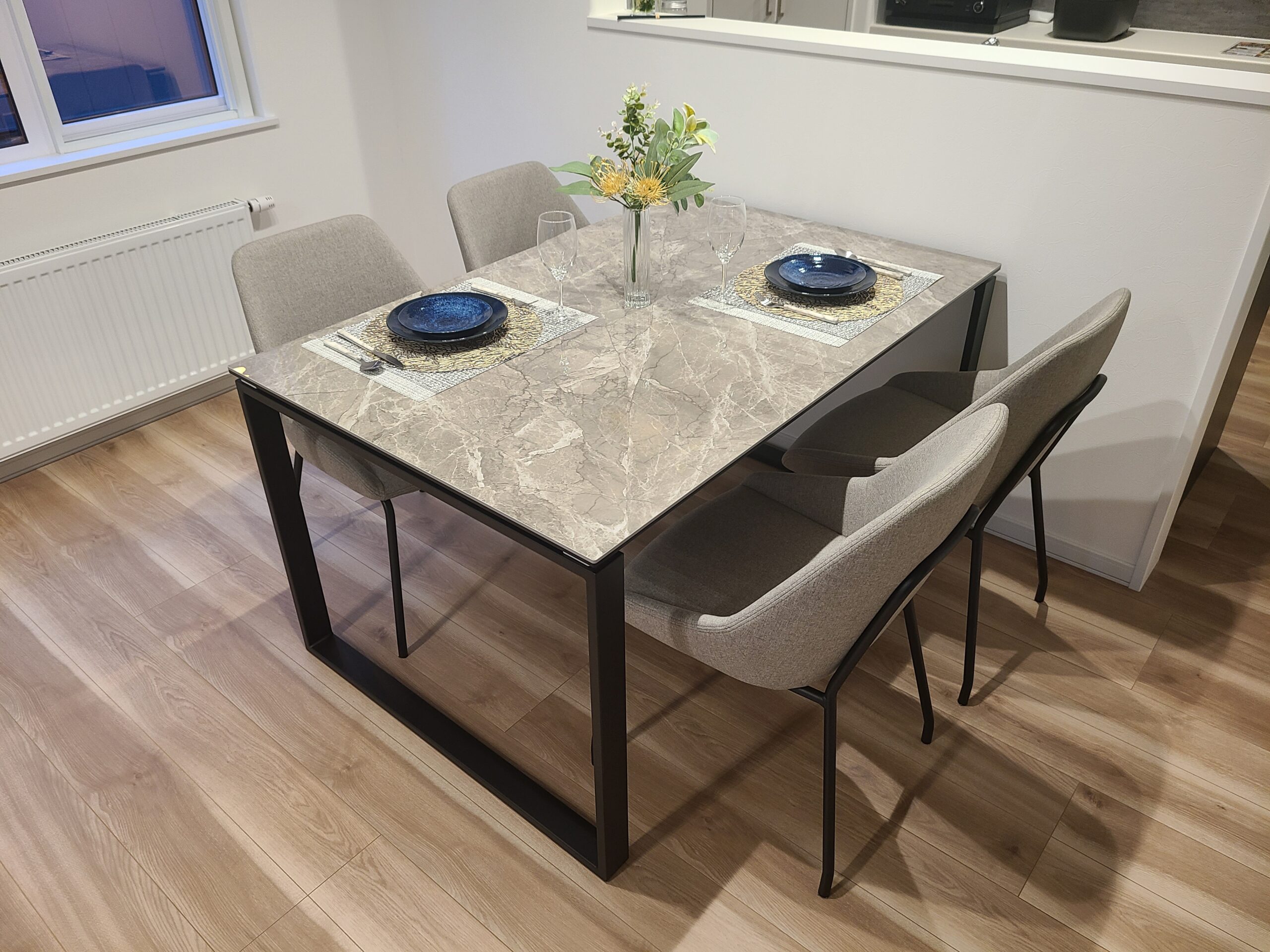 こちらのテーブルは、フライパンや鍋を直置きできるセラミック天板を採用。